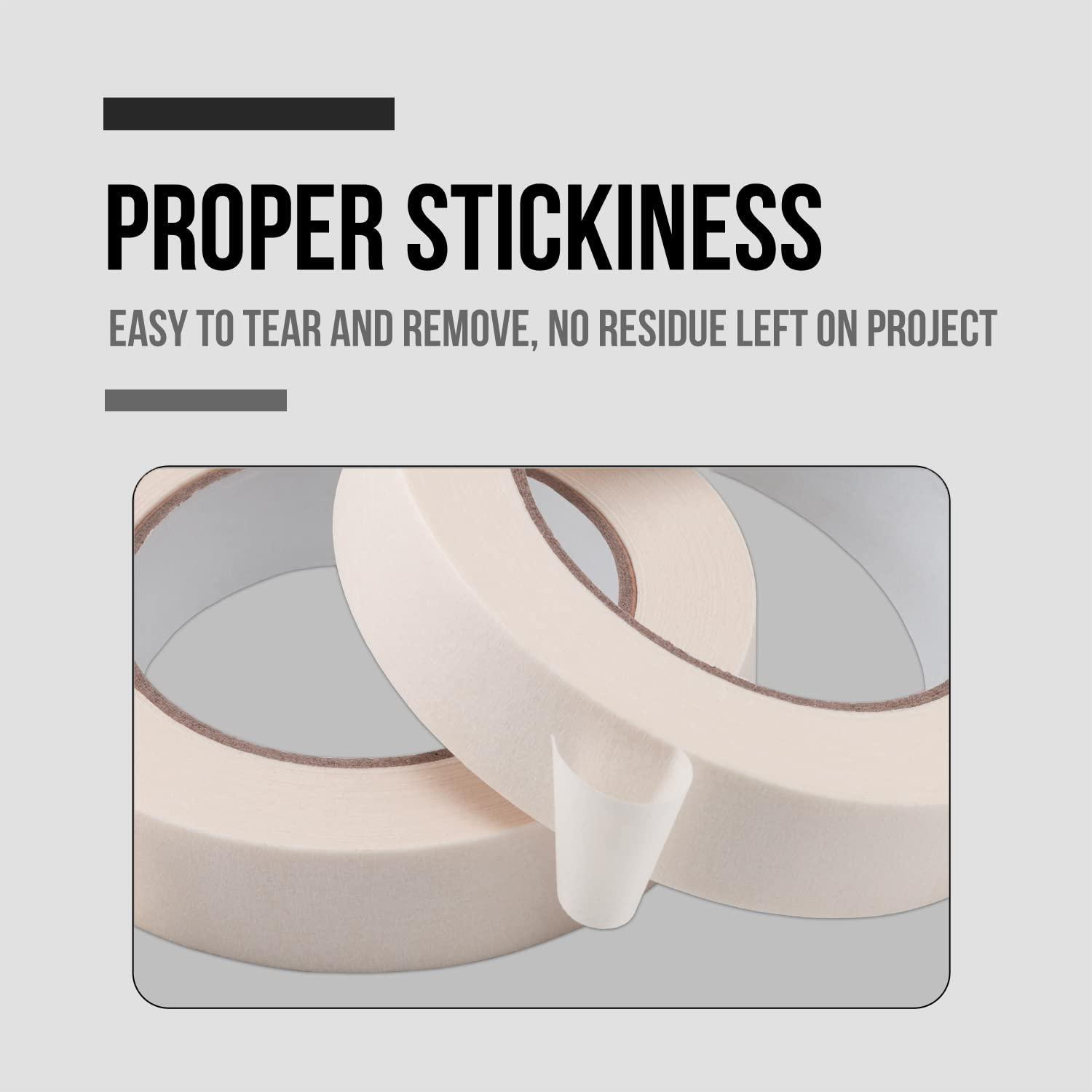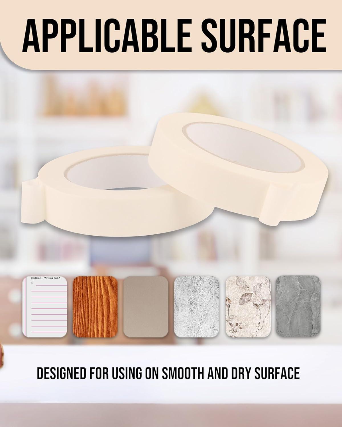 Lichamp Masking Tape 1 inch, 4 Pack General Purpose Beige White Masking Tape, 1 inch x 55 Yards x 4 Rolls (220 Total Yards)(4 Rolls x 0.94 inch x 55 Yards)