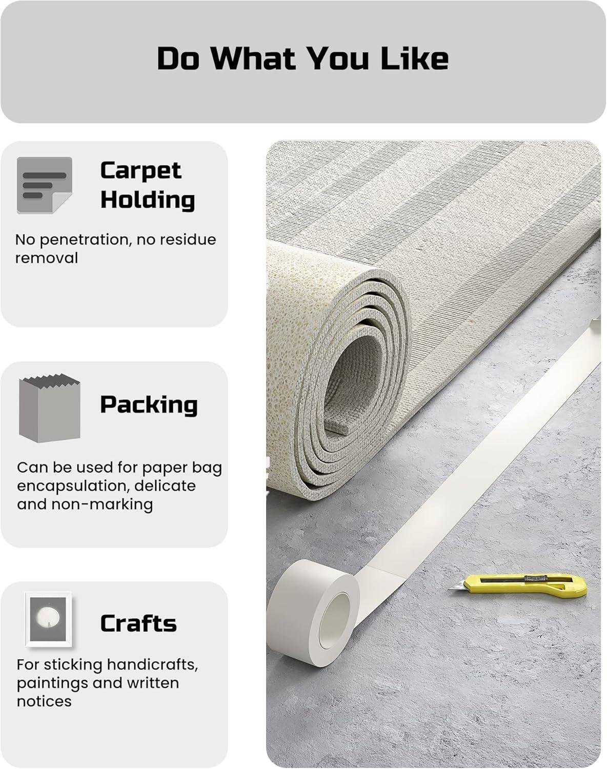 Lichamp Double Sided Carpet Tape 2″ x 44 Yards, Hardwood Floors Carpet Tape for Area Rugs On Carpet Tile Stickers Rug Gripper Tapes, 11 Yards x 4 Rolls