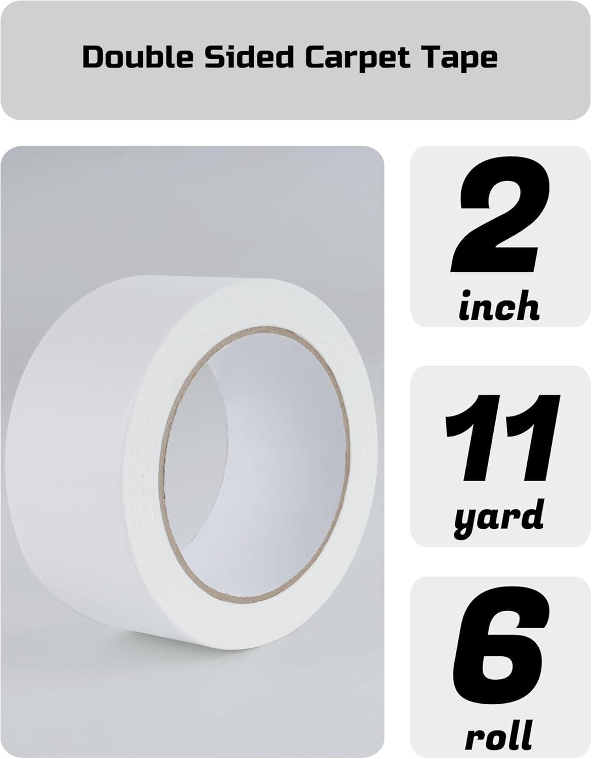 Lichamp Bulk 6 Pack Double Sided Carpet Tape for Hardwood Floors, 2 inch Wide by 11 Yards Carpet Tape for Area Rugs On Carpet Stickers Rug Gripper Tapes