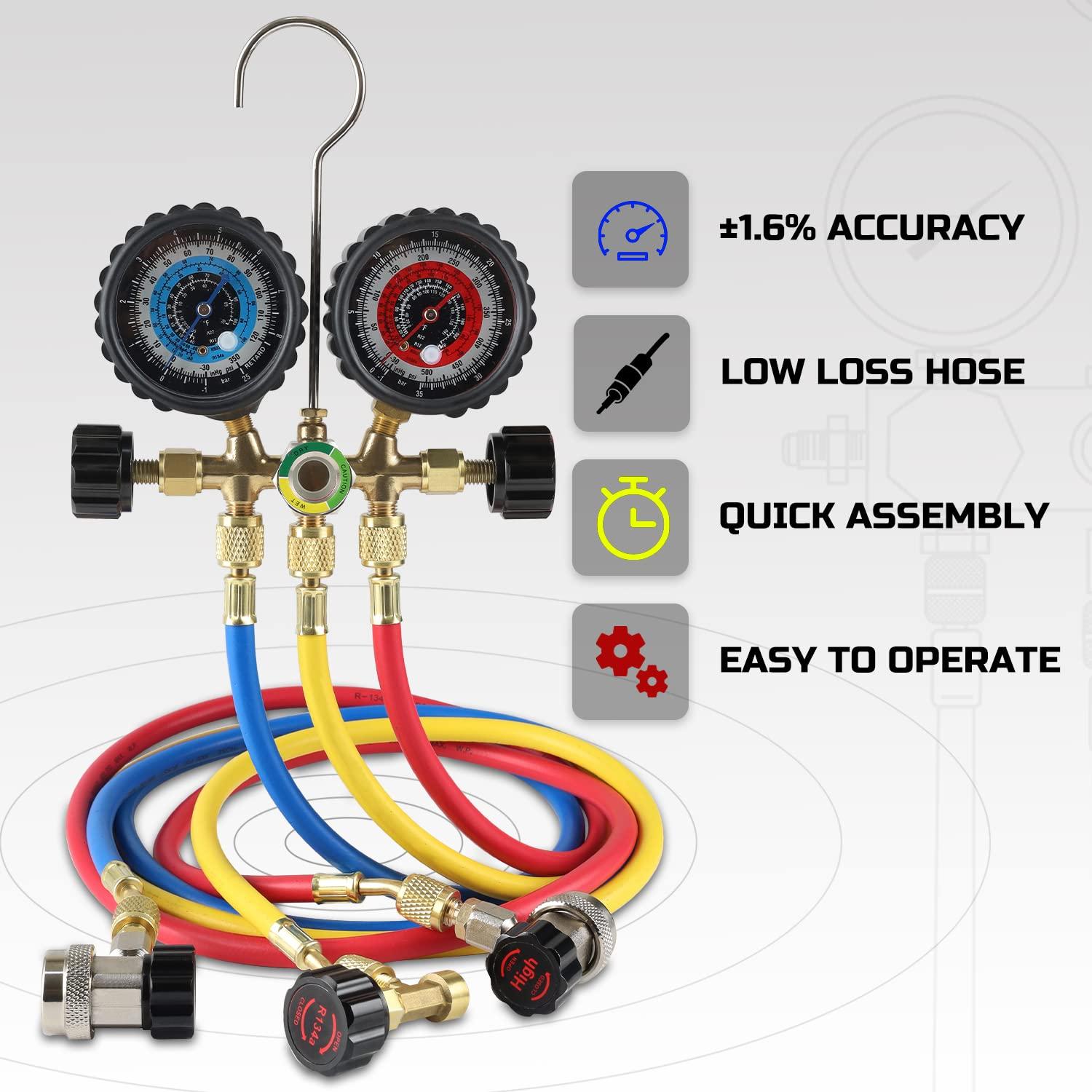 Easy to Operate: Easy to assembly and operate design for an efficiently ac charging work, include step by step manual to help renew your ac cooling system safety and potency